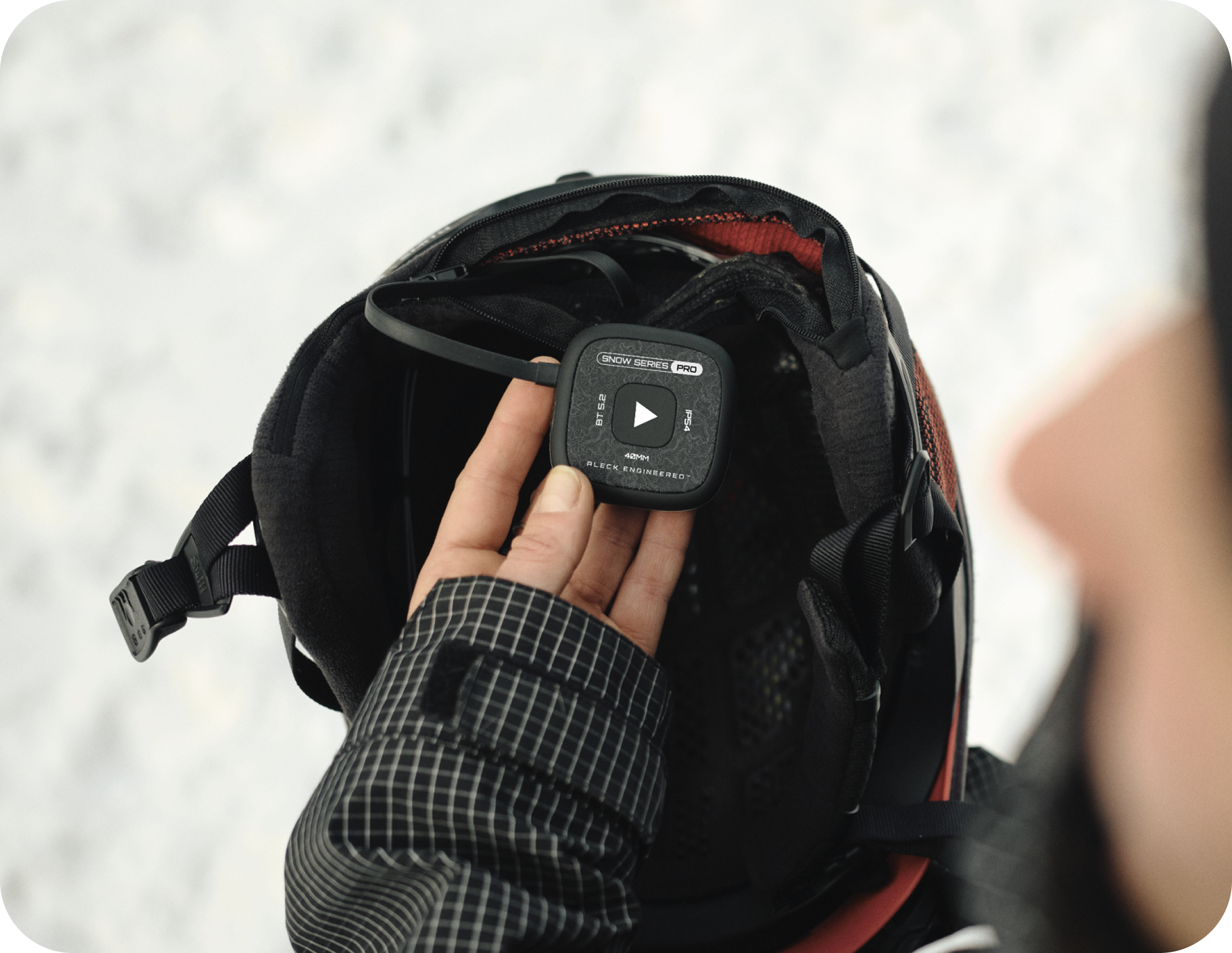 Aleck Snow Series Ultra is the ultimate evolution of helmet audio for skiers and snowboarders who want to stay connected anywhere on the mountain. Combining the high-fidelity performance of the Snow Series Pro with the long-range power of the Off Grid, Ultra delivers the complete snow communication experience. Enjoy immersive, customizable sound through upgraded 40 mm drivers and Aleck Audio Lab EQ, while Off Grid push-to-talk keeps your crew in sync across miles of terrain, with no phone signal required. With glove-friendly controls, seamless integration into any audio-ready helmet, and a rugged EVA carry case, Snow Series Ultra sets a new standard for premium snow helmet audio and communication.